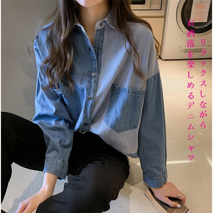 デニムシャツ ブラウス 長袖 レディース シャツブラウス トップス ゆったり 大きいサイズ 切り替え オフィス 通勤 体型カバー 夏 秋 コーデ ストライプ デニム Cd Bl 0012 Youdear 通販 Yahoo ショッピング